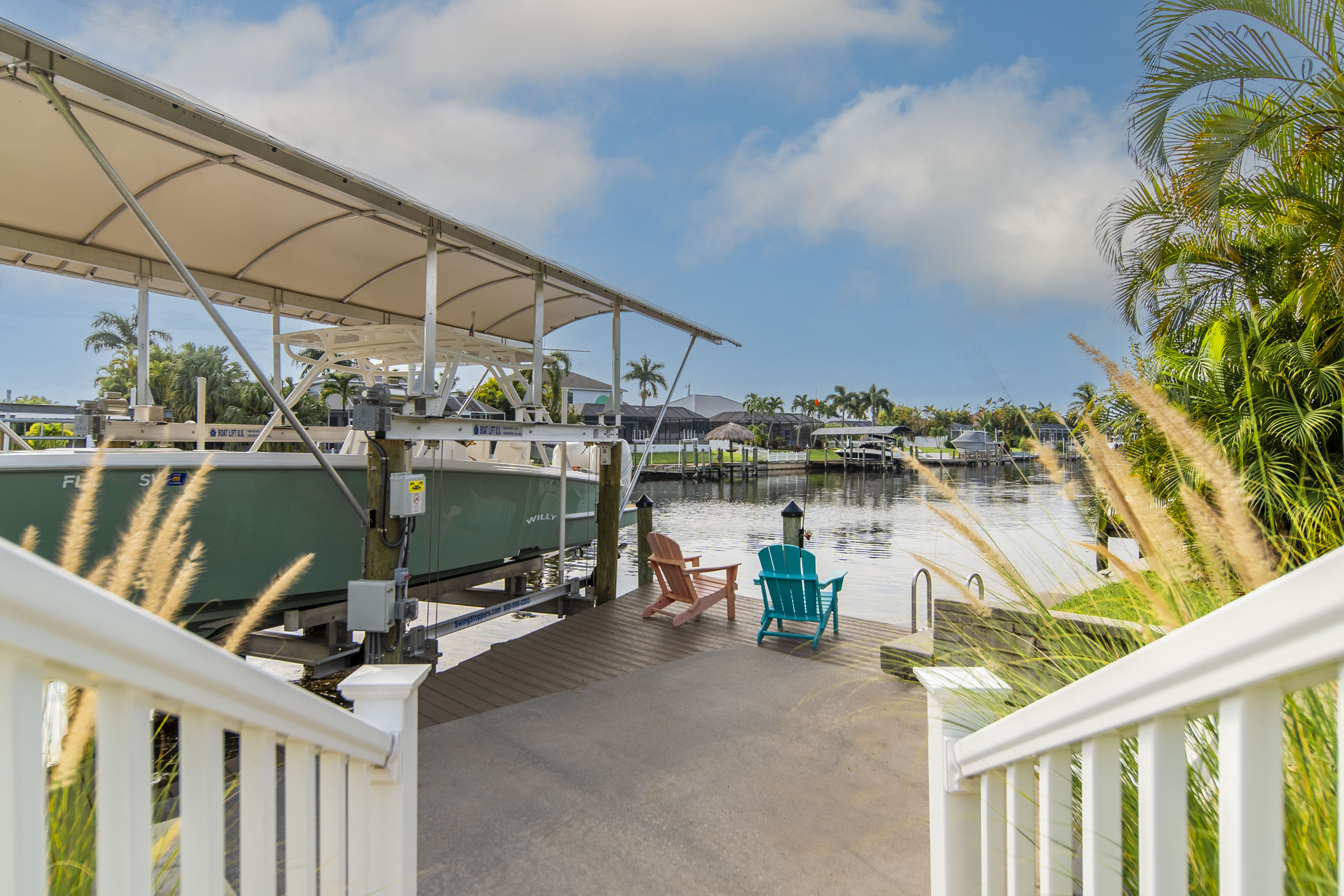 This southern exposure holiday villa “Willy’s Cove” was designed in a beautiful contemporary ranch style architecture. The house, which was completely renovated in 2022, is located in walking distance to several popular restaurants and shops as the Lobster Lady, the Overtime Pizzeria & Sports Pub, Publix supermarket etc. . Close proximity to Cape Harbor and Rumrunners Restaurant, too. It has Gulf access and guests can use the private dock at the canal for boating. It has a huge flat yard where kids can play or adults can enjoy an outdoor oasis.